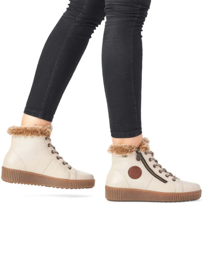 Утепленные ботинки из 100% натуральной кожи от немецкого бренда REMONTE. Подкладка и стелька выполнены из натуральной шерсти с мембраной, что увеличивает теплоизоляционные свойства модели и позволяет чувствовать себя комфортно даже при низких температурах. Спортивная резиновая подошва обладает повышенной амортизацией и хорошим сцеплением с поверхностью. Удобная колодка адаптирована под женскую стопу и длительную носку. Боковая молния существенно облегчают процесс обувания, а наличие шнуровки позволяет регулировать высоту подъёма. Подходят на стандартную полноту стопы и небольшой +/-