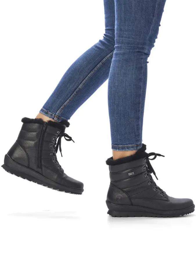 С шнуровкой и молнией для легкости обувания, ботинки REMONTE станут незаменимым акцентом Вашего гардероба, предлагая исключительное сочетание стиля и практичности в холодные месяцы.