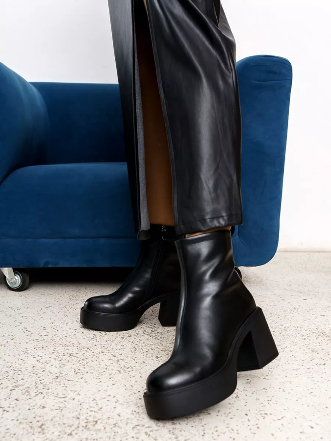 Байковая подкладка обеспечивает максимальный комфорт при носке, а также удерживает тепло. Полимерная подошва с платформой высотой 3,5 см и каблуком-столбиком высотой 8,5 см добавляют высоту и элегантность Вашему образу. Модель имеет полноту G(7) и подойдет на стандартную полноту стопы и небольшой +/-.