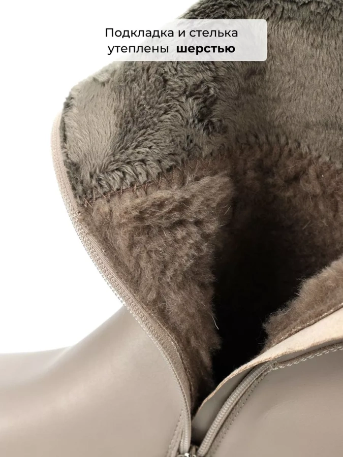 Сапоги изготовлены из 100% натуральной кожи, придавая Вашему образу роскошь и изысканность. Внутренняя подкладка из шерсти и шерстяная стелька гарантируют тепло и комфорт в самые холодные дни.