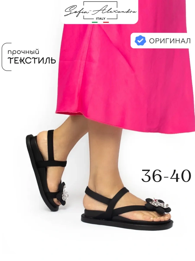 Женские текстильные сандалии от итальянского бренда SOFIA-ALEXANDRA. Длина стельки в см.: 36 - 23/ 37 - 23,5/ 38 - 24/ 39 - 25/ 40 - 25,5. Высота подошвы в пяточной части - 3 см., высота подошвы в носочной части – 2 см. Эластичные ремешки облегчают процесс обувания и обеспечивают надежную фиксацию на ноге. Декоративный элемент над пальцами - изюминка модели. Подошва обладает износостойкостью и хорошим сцеплением с поверхностью. Удобная колодка адаптирована под женскую стопу и длительную носку. Подходят на стандартную полноту стопы и небольшой +/-.