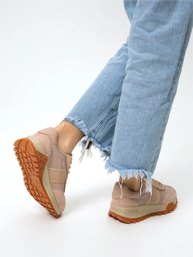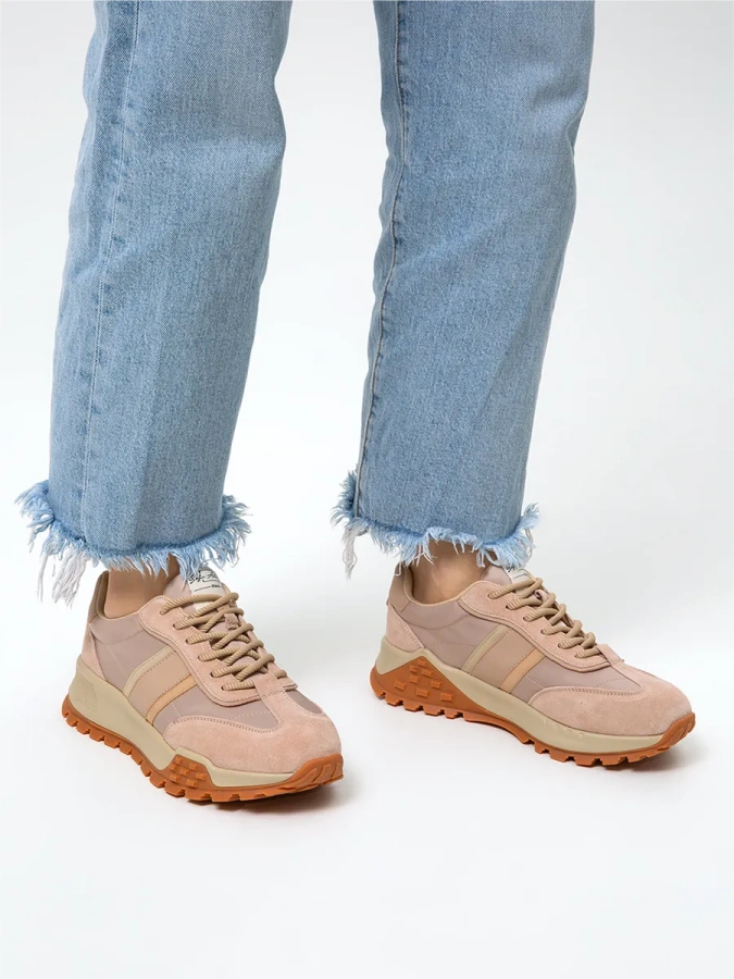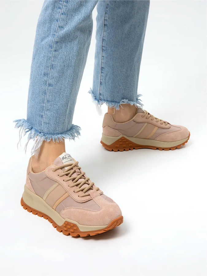 Натуральная замша и высококачественный текстиль обеспечивают долговечность и приятные ощущения при ходьбе. Толстая подошва и продуманный дизайн делают кроссовки подходящими для повседневной носки, а также для переменчивой весенне-летней погоды. Кожаная съёмная стелька не только добавляет комфорт, но и способствует естественной вентиляции стопы. Благодаря этому, вы будете чувствовать себя уверенно и комфортно в течение всего дня.Прочная шнуровка обеспечивает надёжную фиксацию на ноге, добавляя удобство в использовании. Эти кроссовки станут незаменимой частью вашего гардероба и помогут создать стильный образ для любого случая.