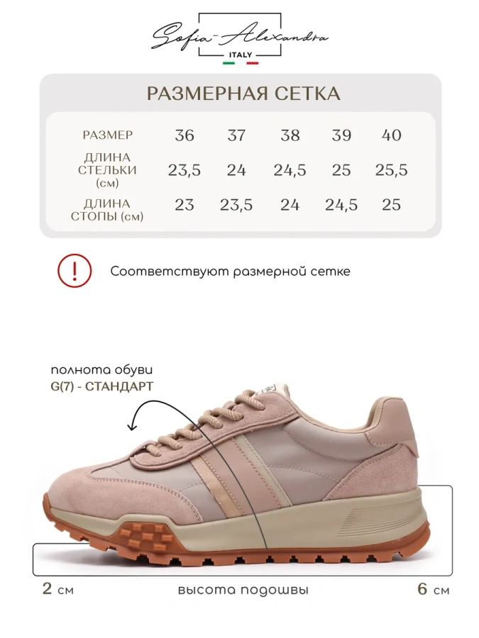 Длина стельки: 36р - 23,5см/ 37р - 24,0см/ 38р - 24,5см/ 39р - 25,0см/40р - 25,5см. Полнота G (7) (на стандартную и увеличенную полноту).
