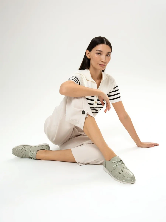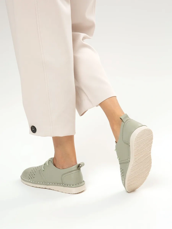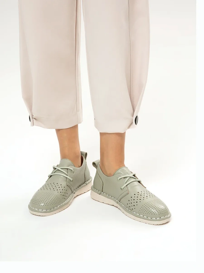 Эти туфли, выполненные из 100% натуральной кожи, отличаются высоким качеством и долговечностью. Резиновая подошва обеспечивает отличное сцепление с поверхностью и длительный срок службы. Высота подошвы 2 см и каблука 2,5 см делают туфли удобными для повседневной носки. Шнуровка позволяет адаптировать посадку по своему вкусу, обеспечивая комфорт и удобство. Оливковый цвет добавит вашему образу свежесть и оригинальность. Они прекрасно подойдут для весенне-летнего сезона.
