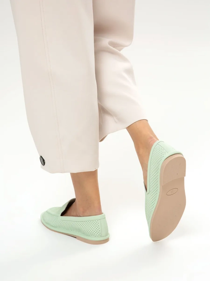 Изготовленные из 100% натуральной кожи, они отличаются высоким качеством и долговечностью. Зелёный цвет добавит яркости и свежести вашему образу. Венский каблук высотой 1,5 см обеспечивает комфорт и удобство при ходьбе, а резиновая подошва толщиной 1 см придаёт устойчивость. Отсутствие застёжек делает модель удобной в повседневном использовании. Эти туфли станут отличным дополнением к вашему гардеробу и подойдут для прогулок и встреч с друзьями.