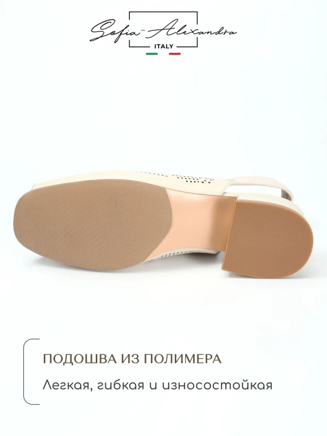 Верх обуви выполнен из 100% натуральной кожи, что придаёт ей роскошный вид и долговечность. Внутренняя подкладка также изготовлена из натуральной кожи, обеспечивая комфорт и воздухопроницаемость для ваших ног в течении всего дня. Стелька, сделанная из того же качественного материала, добавляет мягкость и поддержку, позволяя вам чувствовать себя уютно при каждом шаге. Полимерный материал подошвы гарантирует устойчивость и износостойкость, что делает эту модель подходящей для повседневной носки. Высота подошвы составляет 2 см, а каблука — 3,5 см, что создаёт идеальный баланс между стилем и комфортом. Танкетка добавляет изящества и визуально удлиняет ноги, что делает туфли универсальными для различных образов. Отсутствие застёжки обеспечивает лёгкость в надевании, что особенно удобно в динамичном ритме жизни.