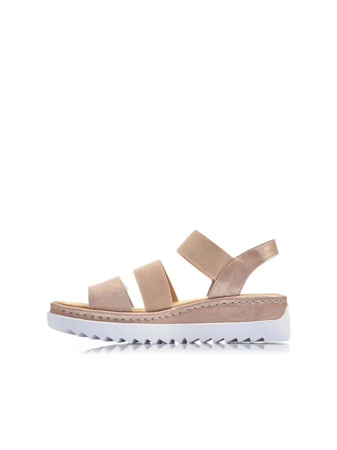 Женские босоножки из натуральной кожи от немецкого бренда Rieker. Главная отличительная черта обуви этого бренда - непревзойденное удобство и комфорт. Мягкая текстильная стелька с «эффектом памяти» Antistress индивидуально подстраивается под форму стопы, снимает чувство усталости и разгружает суставы, поддерживает и амортизирует стопу. Подошва на танкетке обладает отличной амортизацией и хорошим сцеплением с поверхностью. Удобная колодка адаптирована под женскую стопу и длительную носку, а наличие двух втачных резинки облегчает процесс обувания, они фиксируют ногу, позволяют адаптировать модель под различный объем стопы и предотвращает натирание в жару. Подходят на стандартную полноту стопы и небольшой +/-.