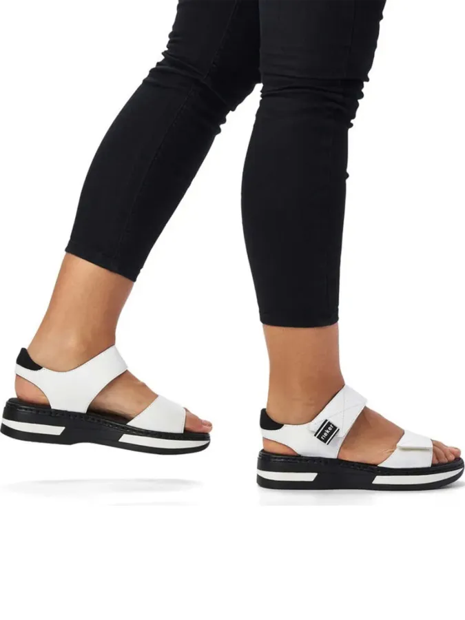 Женские босоножки из натуральной кожи от немецкого бренда Rieker. Главная отличительная черта обуви этого бренда - непревзойденное удобство и комфорт. Мягкая стелька с «эффектом памяти» Antistress индивидуально подстраивается под форму стопы, снимает чувство усталости и разгружает суставы, поддерживает и амортизирует стопу. Подошва с эффектом ударопоглощения обладает отличной амортизацией и хорошим сцеплением с поверхностью. Удобная колодка адаптирована под женскую стопу и длительную носку, а наличие застежек на липучках обеспечивает фиксацию на ноге. Подходит на стандартную полноту стопы и небольшой +/-.