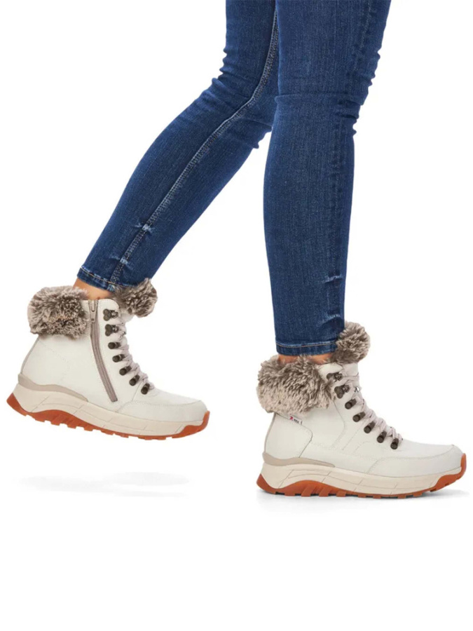 Представляем элегантные и уютные белые ботинки для женщин от престижного швейцарского бренда RIEKER. Эта модель - идеальный выбор для холодного времени года, придающая Вашему образу изысканность и комфорт.