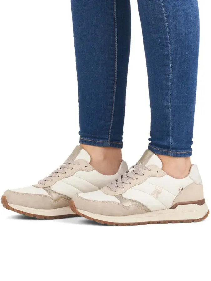 RIEKER - это не просто кроссовки, а стиль и комфорт в каждой детали! Встречайте бежевые кроссовки RIEKER - идеальный выбор для современной женщины в осеннем сезоне 2023-2024.