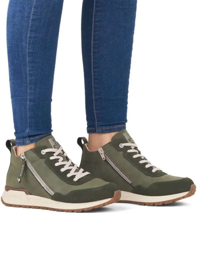 Добро пожаловать в мир стиля и комфорта с женскими ботинками RIEKER из Швейцарии - идеальным выбором для осени из коллекции Осень-Зима 2023-2024. Зеленые ботинки сочетают в себе спортивный шарм и элегантность, создавая стиль Sport-chic.