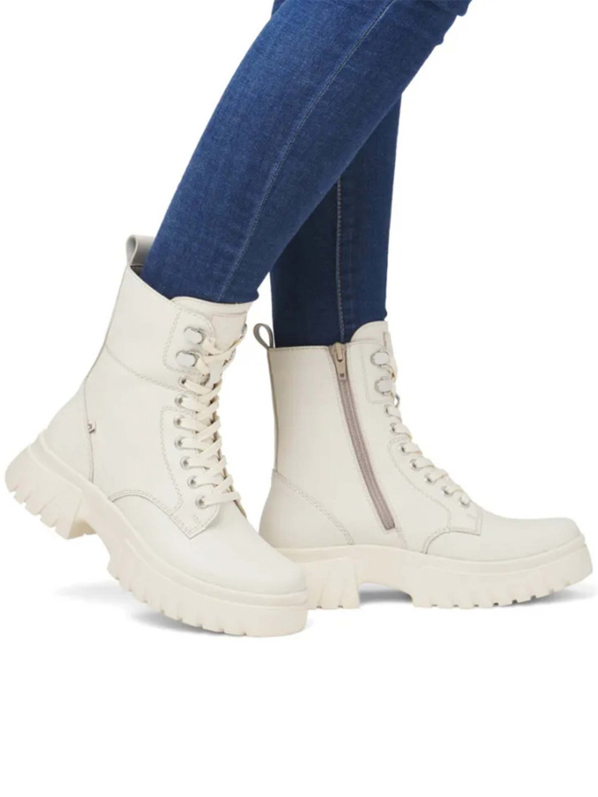 Женские ботинки RIEKER бежевого цвета — отличный выбор для осени. Натуральная кожа верха обеспечивает долговечность и комфорт. Тёплая подкладка из ворсина и текстильная стелька создают уют и поддерживают тепло. ЭВА подошва гарантирует лёгкость и амортизацию при ходьбе. Стиль casual делает эти ботинки идеальными для повседневного образа. Удобная шнуровка в сочетании с молнией обеспечивает надёжную фиксацию.