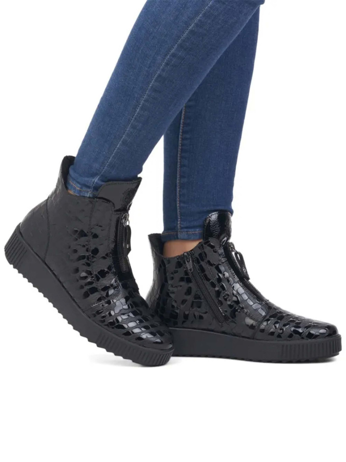 Привнесите в свой зимний гардероб изысканность и тепло с женскими ботинками от швейцарского бренда RIEKER. Черные ботинки из 100% натуральной кожи являются воплощением стиля Casual из коллекции Осень-Зима 2023-2024.