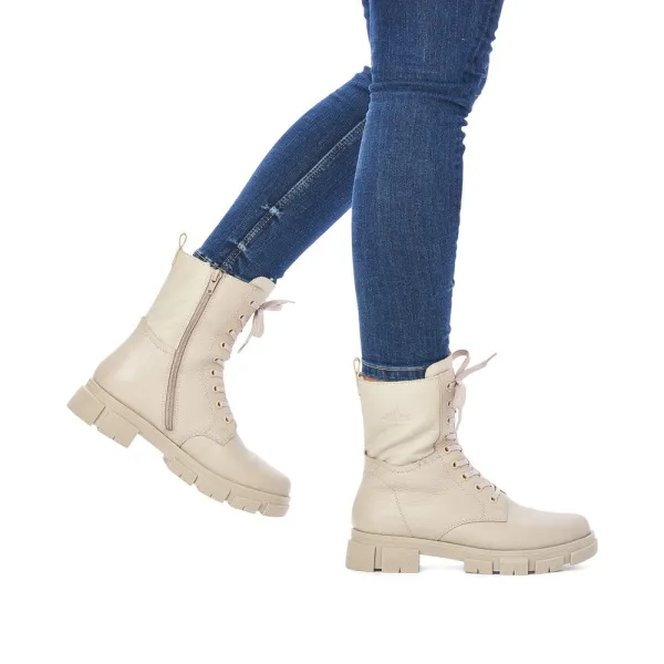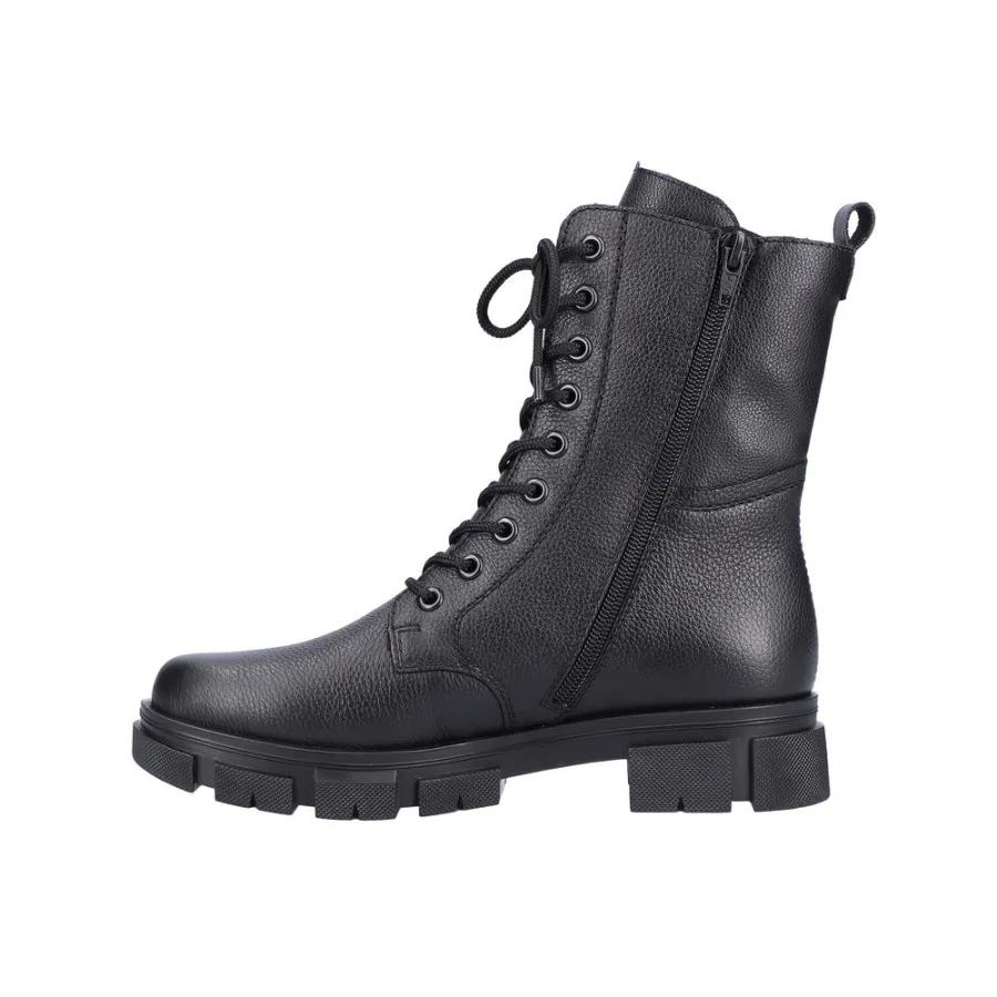 С высотой каблука в 4 см, берцы подчеркнут Вашу индивидуальность в повседневном стиле. Шнуровка и молния обеспечивают легкость надевания и фиксации. В этом сезоне их легко сочетать с джинсами или стильной юбкой для создания элегантного casual образа. Погрузитесь в коллекцию Осень-Зима 2023-2024 с RIEKER и добавьте швейцарское качество в свой гардероб.