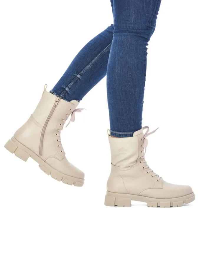 Изысканные берцы RIEKER из Швейцарии - надежный выбор для зимнего стиля. В нежном бежевом оттенке они станут ярким акцентом в Вашем гардеробе. Изготовленные из 100% натуральной кожи, берцы сочетают в себе роскошь и функциональность.