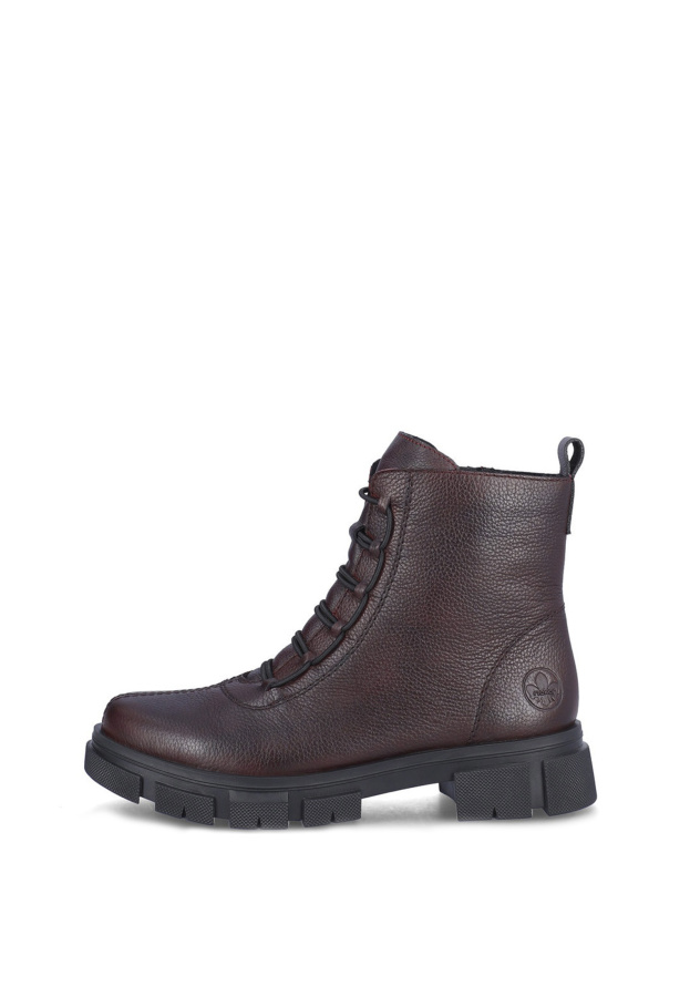 RIEKER - идеальный выбор на осень 2023-2024! Женские бордовые ботинки объединяют швейцарское качество и стиль, создавая непревзойденный образ для ценителей комфорта и классики.