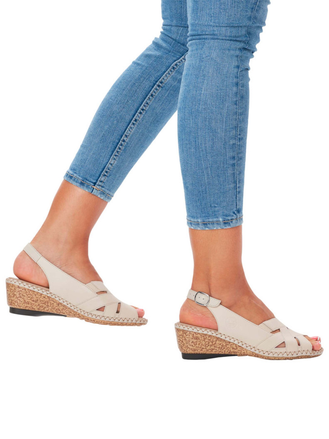 Женские босоножки из натуральной кожи от немецкого бренда Rieker. Главная отличительная черта обуви этого бренда - непревзойденное удобство и комфорт. Мягкая стелька поддерживает и амортизирует стопу. Подошва танкетке с эффектом ударопоглощения обладает отличной устойчивостью и хорошим сцеплением с поверхностью. Удобная колодка адаптирована под женскую стопу и длительную носку, а наличие ремешка с застежкой обеспечивает надежную фиксацию на ноге. Подходят на стандартную полноту стопы и небольшой +/-