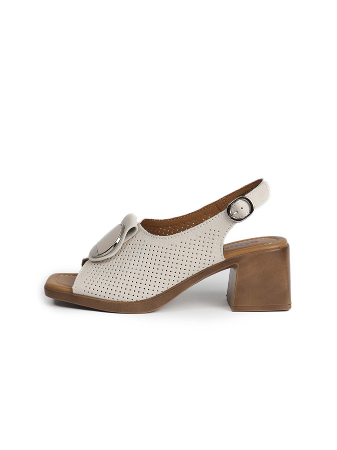 Бежевое исполнение в стиле casual подойдёт для создания повседневных образов. Натуральная кожа верха и стельки обеспечивает комфорт и долговечность обуви. Мягкая искусственная кожа подкладки гарантирует приятные ощущения при носке. Удобная высота подошвы в 1,5 см и трапециевидный каблук высотой 6 см придают босоножкам изящный и стильный вид. Застёжка с пряжкой и ремешком обеспечивает надёжную фиксацию обуви на ноге.
