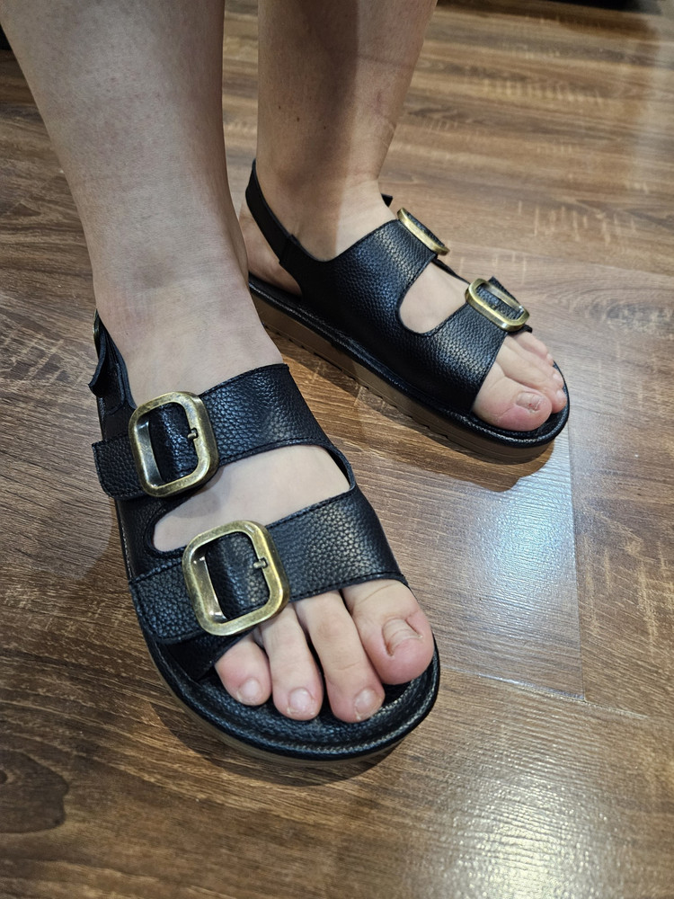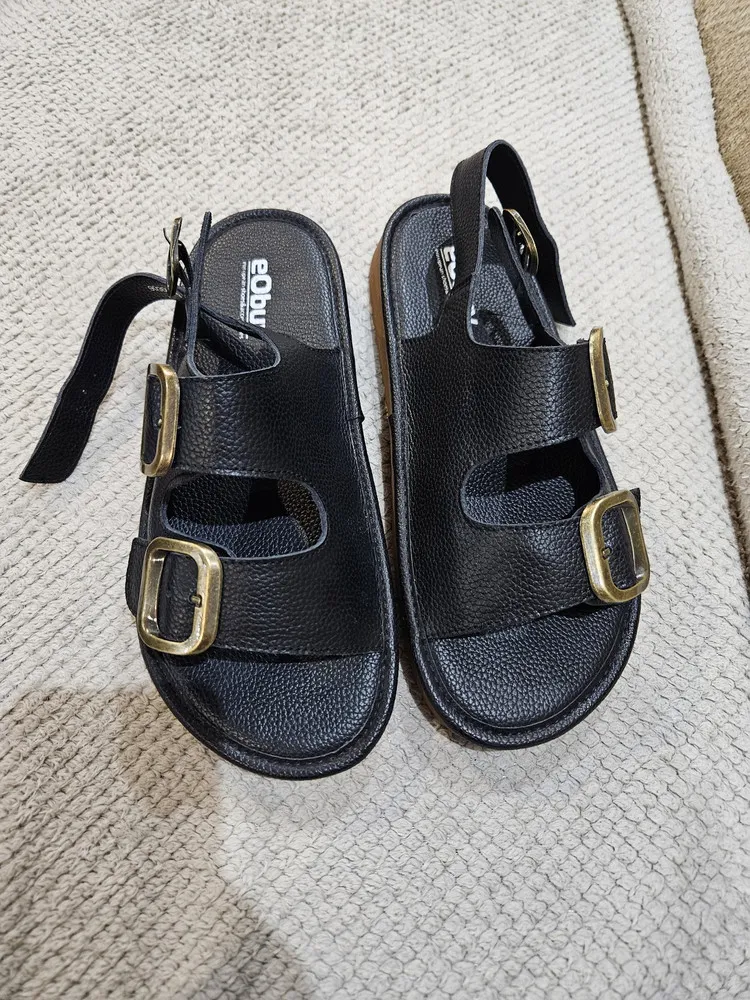 Эти стильные и удобные сандалии выполнены из 100% натуральной кожи, что обеспечивает их долговечность и комфорт в носке. Чёрный цвет сандалий eObuv подойдёт к любому образу в стиле casual. Высота подошвы в 1,5 см и каблука в 2,5 см (вид каблука — кирпич) придаёт сандалиям изящный вид, не жертвуя при этом удобством. Застёжка в виде пряжки с ремешком обеспечивает надёжную фиксацию на ноге.