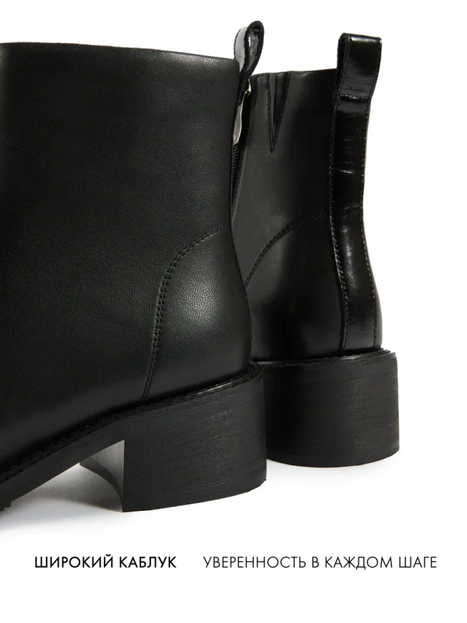 Чёрный цвет придаёт обуви универсальность, позволяя сочетать её с разными образами. Изготовленные из 100% натуральной кожи, они обеспечивают долговечность и комфорт. Ворсистая подкладка и стелька создают уют и тепло, а резиновая подошва высотой 1,2 см и каблук высотой 5 см делают ботинки удобными и практичными. Эти ботинки станут отличным дополнением к вашему осеннему гардеробу, добавив в него нотку итальянского стиля.