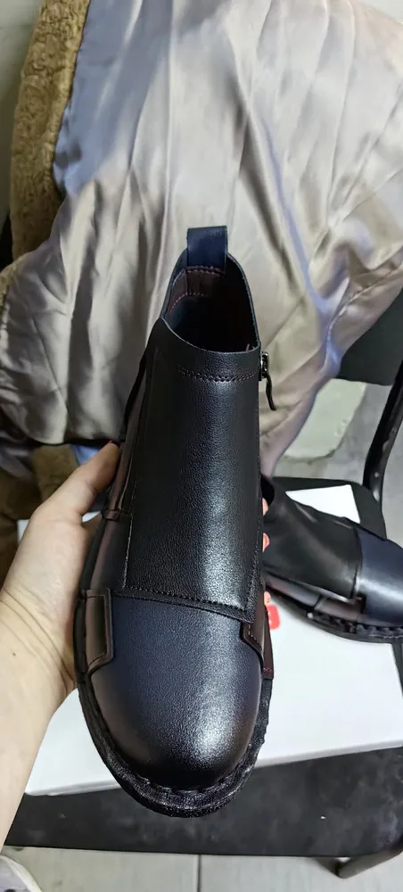 Модель изготовлена из 100% натуральной кожи, что гарантирует её прочность и долговечность. Дизайн в стиле casual делает эти ботинки идеальным выбором для повседневной носки. Комфортная байковая подкладка и стелька обеспечивают тепло и уют в осенние дни. Высота подошвы — 2 см, высота каблука — 3 см. Удобная молния с внутренней стороны модели облегчает процесс обувания. Подходят для сезона осень-зима.