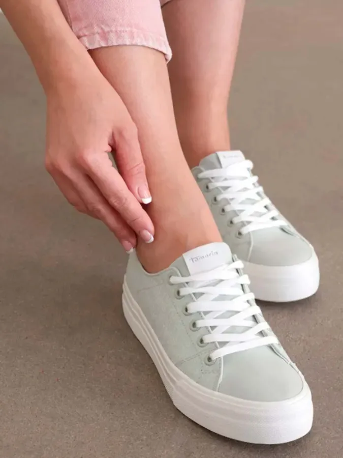 Женские текстильные кеды от немецкого бренда Tamaris. Подкладка и стелька из текстиля обеспечивает комфортный микроклимат внутри. Завышенная подошва отлично амортизирует и обеспечивает хорошее сцепление с поверхностью. Удобная колодка адаптирована под женскую стопу и длительную носку, а наличие шнуровки обеспечивает комфортную посадку на ноге. Подходят на стандартную полноту стопы и небольшой +/-.