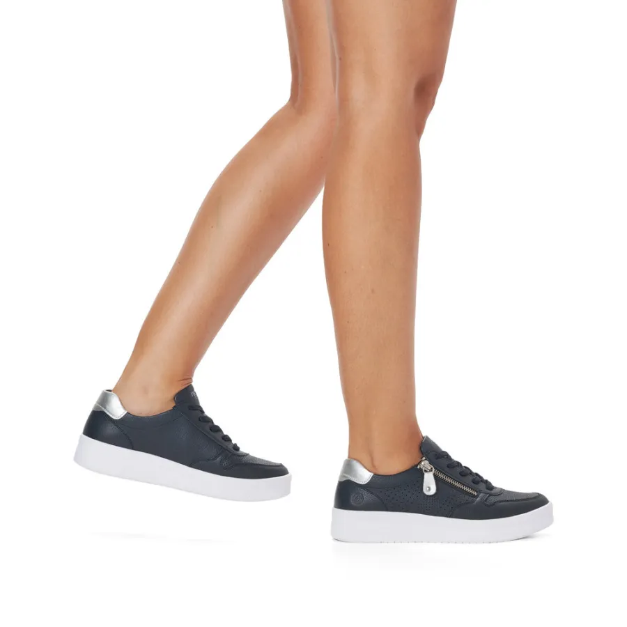 Стиль Casual делает эти кеды идеальными для повседневного использования. Шнуровка и молния обеспечивают легкость надевания, а их яркий синий цвет прекрасно сочетается с различными нарядами. Откройте для себя легкий и стильный образ с кедами REMONTE, воплощая лучшие черты швейцарской моды.