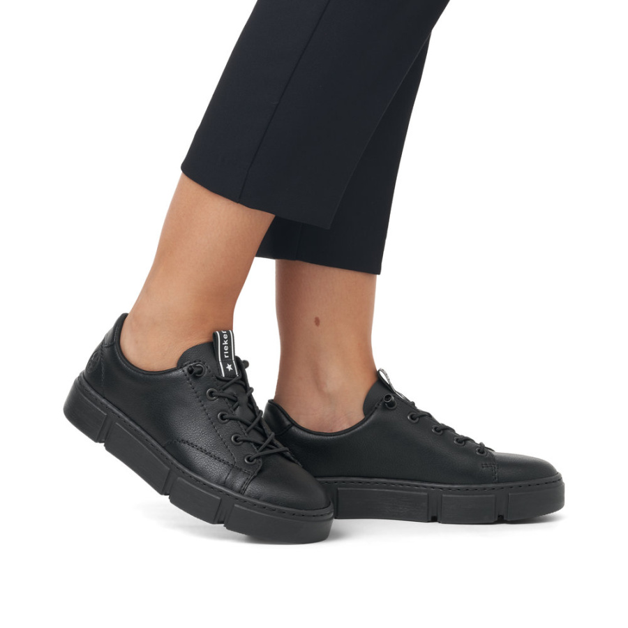 Очаровывайте своим стилем в каждом шаге с женскими кедами от престижного швейцарского бренда RIEKER. Встречайте новинку из коллекции Весна-Лето 2024 - эти черные кеды, идеальное сочетание утонченности и комфорта для повседневного стиля.