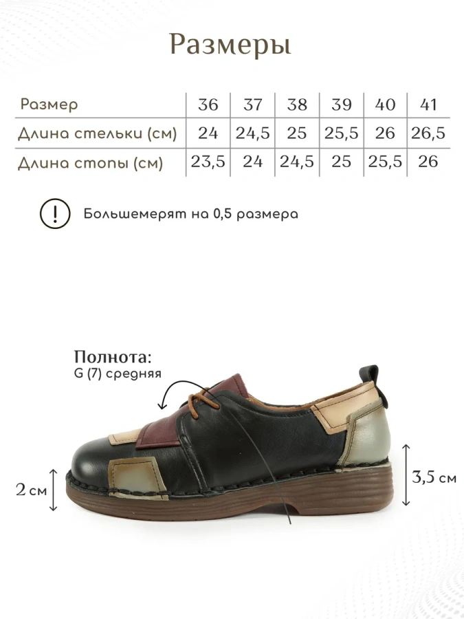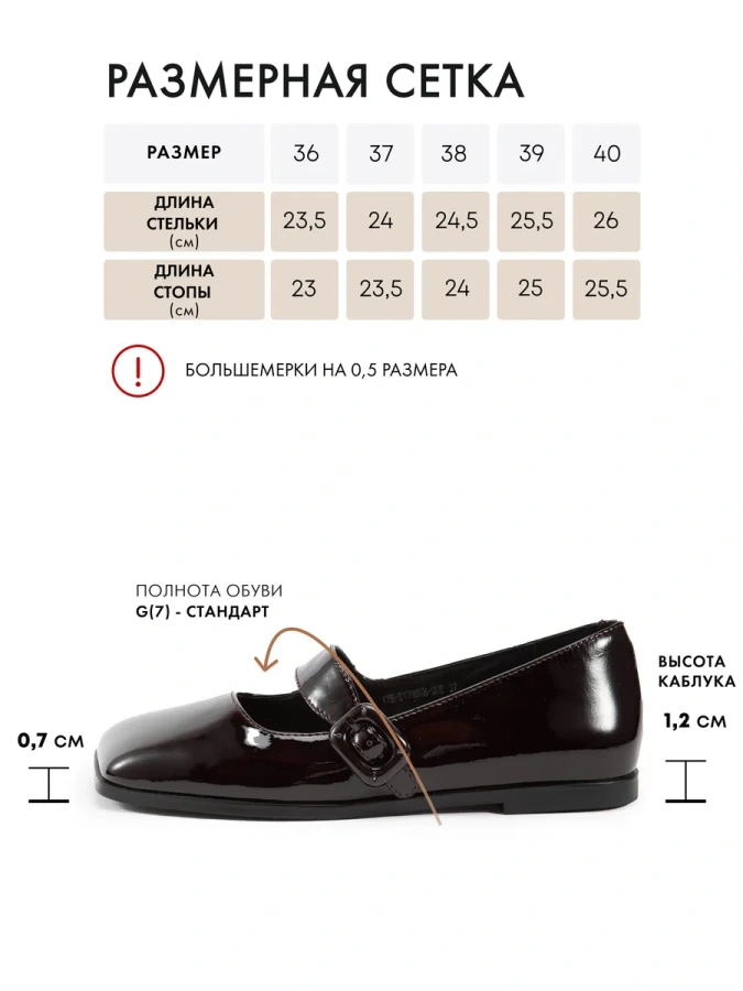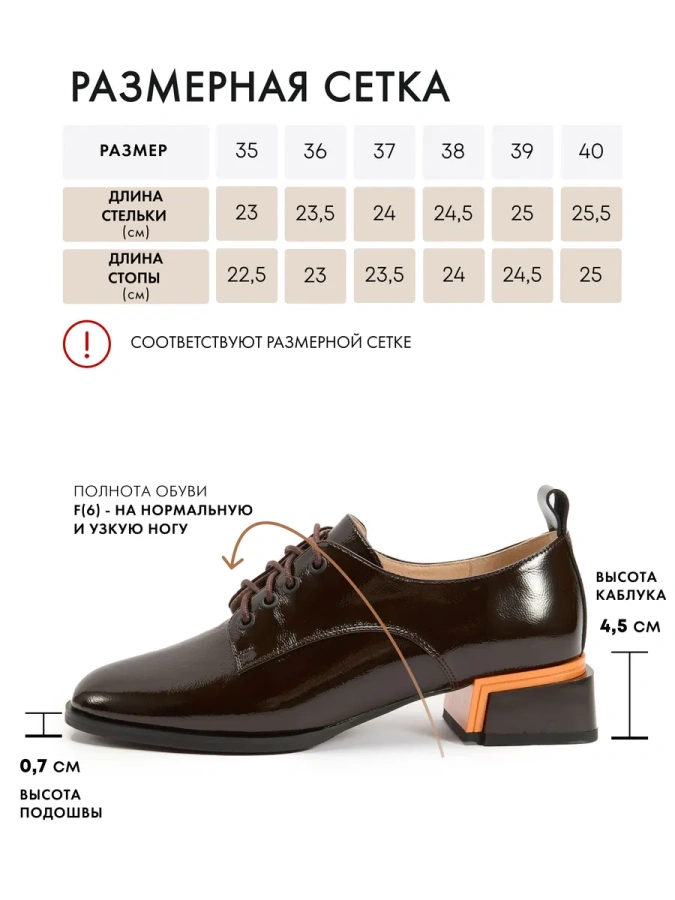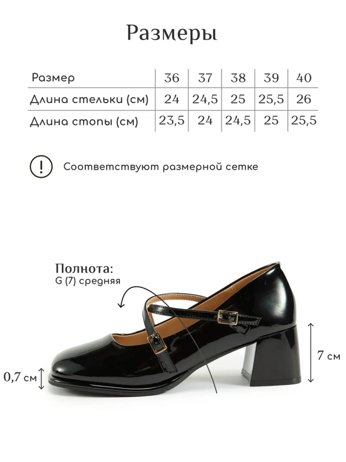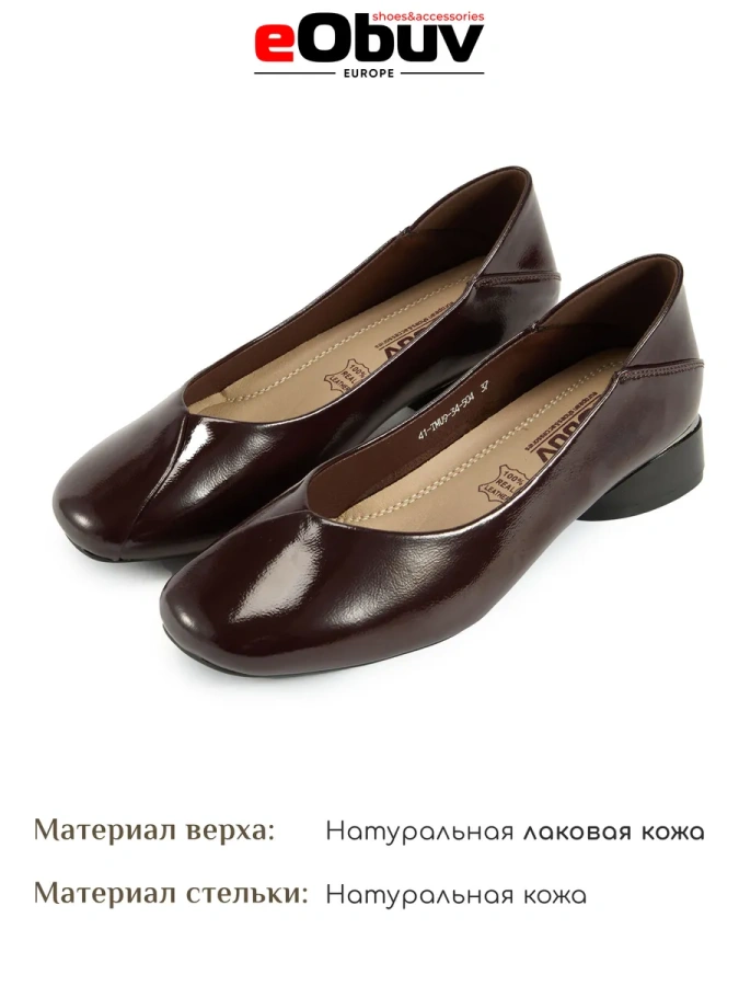 Все туфли разработаны с учетом анатомии стопы: подкладки из натуральной кожи, подошвы из резины или ЭВА, закрытый или открытый верх — всё это делает туфли не только красивыми, но и полностью комфортными даже при длительной носке.