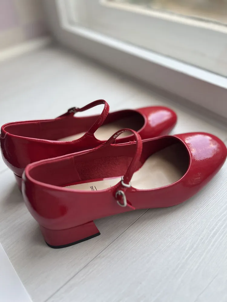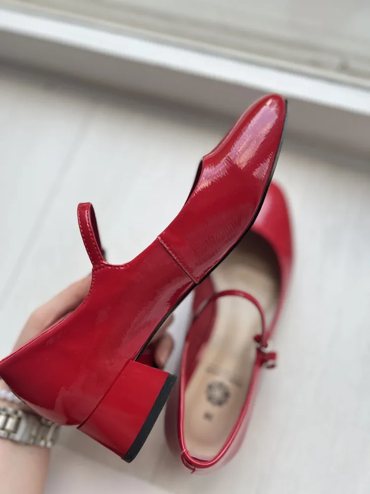 Модель выполнена из 100% натуральной лаковой кожи, что обеспечивает комфорт и долговечность. Удобная подошва высотой 0,7 см и элегантный трапециевидный каблук высотой 4 см обеспечивают комфорт и уверенность при ходьбе. Пряжка и ремешок позволяют регулировать посадку обуви на ноге. Эти красные туфли станут ярким акцентом в вашем образе.