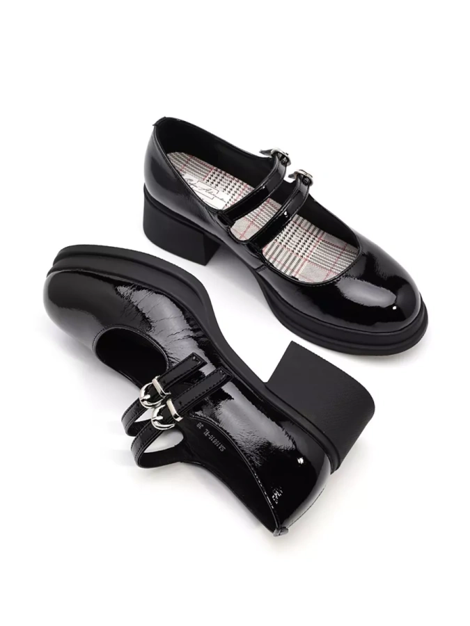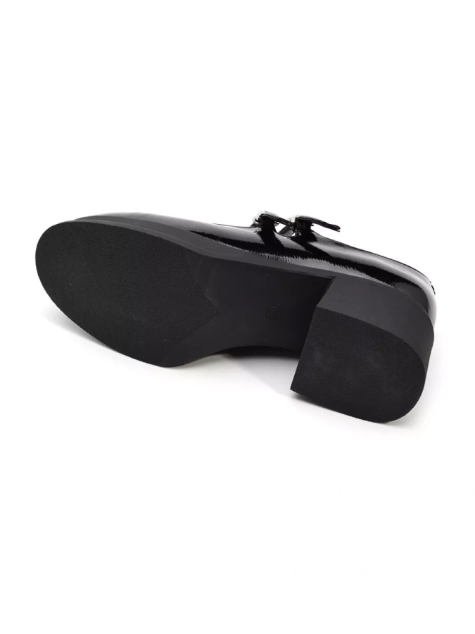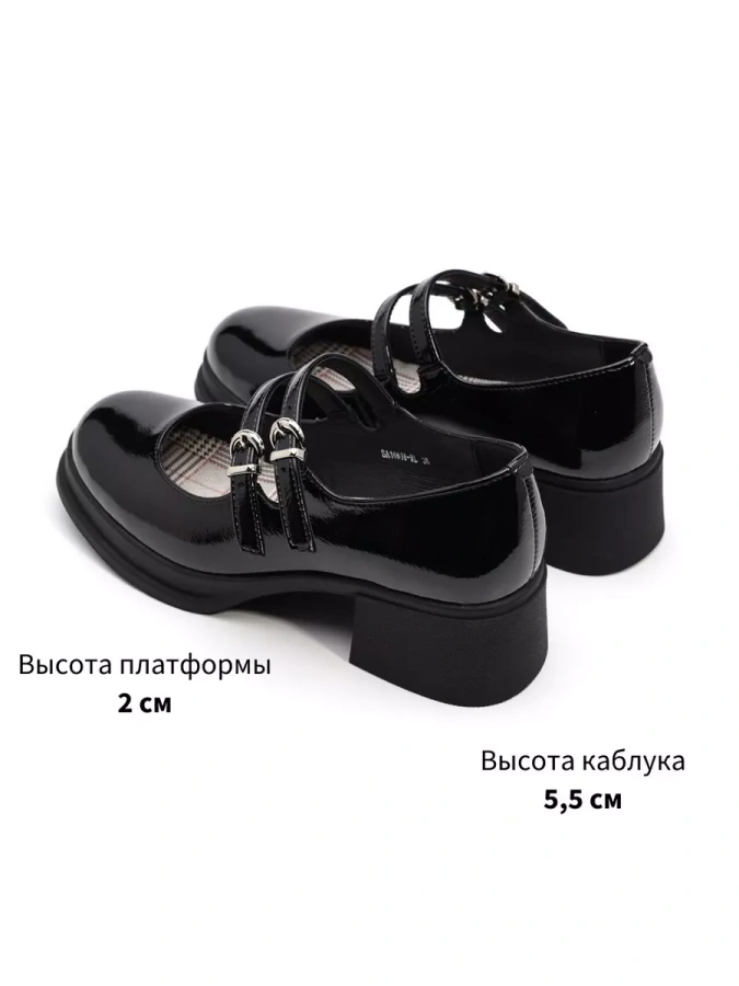Эта элегантная модель в чёрном цвете с лаковым верхом придаёт обуви изысканный блеск. Удобные и комфортные туфли Мэри Джейн оснащены 2-сантиметровой подошвой и 5,5-сантиметровым каблуком, создавая стильный и современный образ. Устойчивый кирпичный каблук обеспечивает комфорт при ходьбе. Пряжка с ремешком надёжно фиксирует обувь, добавляя нотку утончённости. Эти туфли станут универсальным дополнением вашего гардероба, подходя для любого сезона.